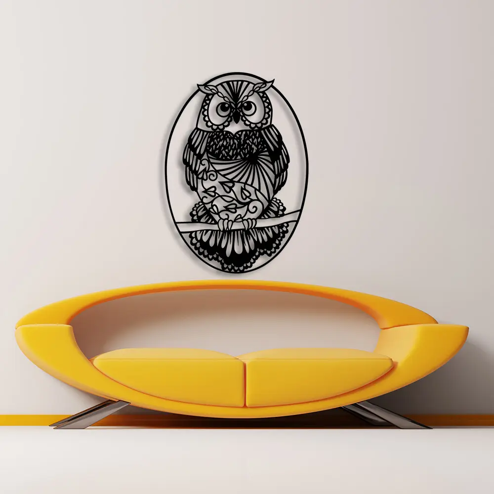 תמונה של ינשוף על ענף חיתוך לייזר מתכת