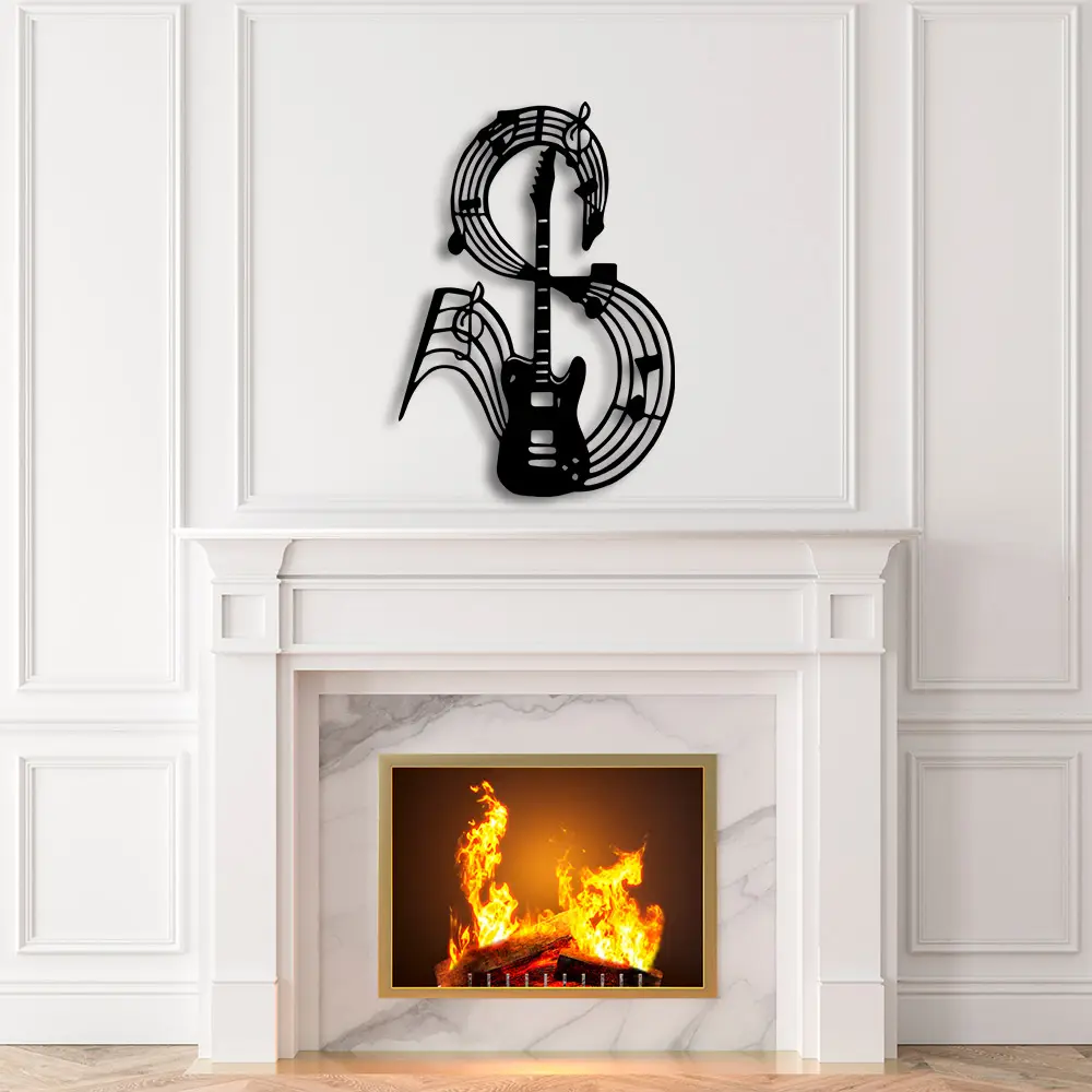 תמונה של גיטרה ותווים חיתוך לייזר מתכת