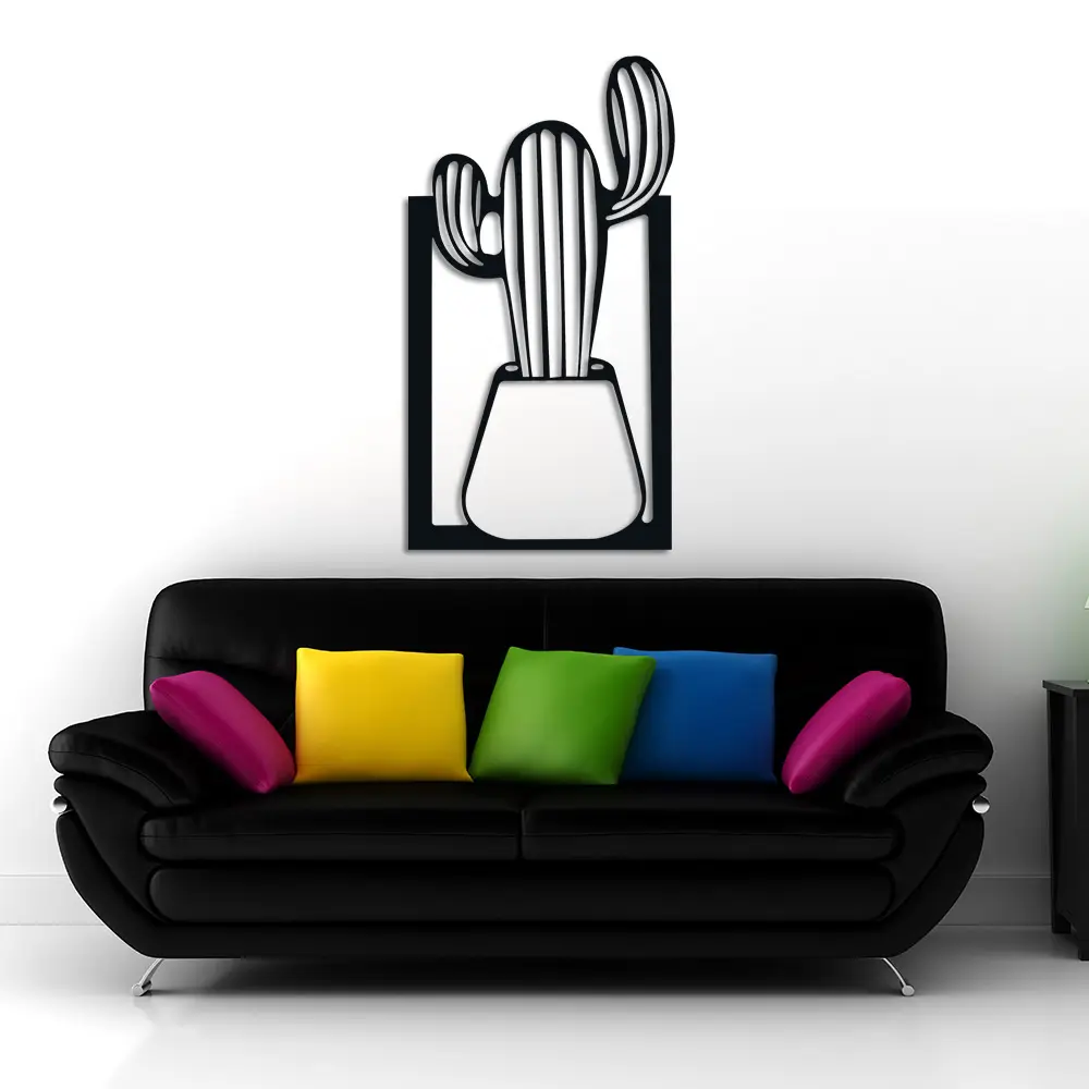 תמונה חיתוך לייזר מתכת של קקטוס | חיתוך לייזר, התמונה הזו, חתוכה בלייזר בעדינות ממתכת איכותית, מציגה המחשה של קקטוס בקווים סימטריים עדינים